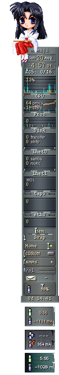2001.08.02 1.4 - Long time no see. Got some fixes, API updates from Bill Wilson, an O'Hare patch from Michael Blakeley, support for /proc/pmu/ and /proc/apm (x86). That's all I have. I've been kinda busy with school/job/random projects. Probably won't be able to get back to this, but I haven't really needed to.